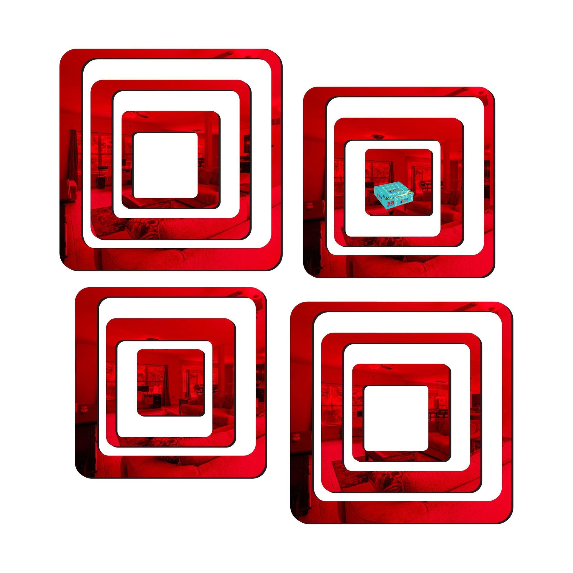 Product Name: 3D Acrylic Mirror Wall Sticker Decoration Package Contains: It has 12 Square Red (B07M7D4HJZ) 3D Acrylic Mirror Wall Sticker Decoration for Kids Room/Living Room/Bedroom/Office/Home Wall Material: Acrylic Length: 11 Breadth: 5 Height: 11 Combo/Set Of: Pack of 1 Weight: 200