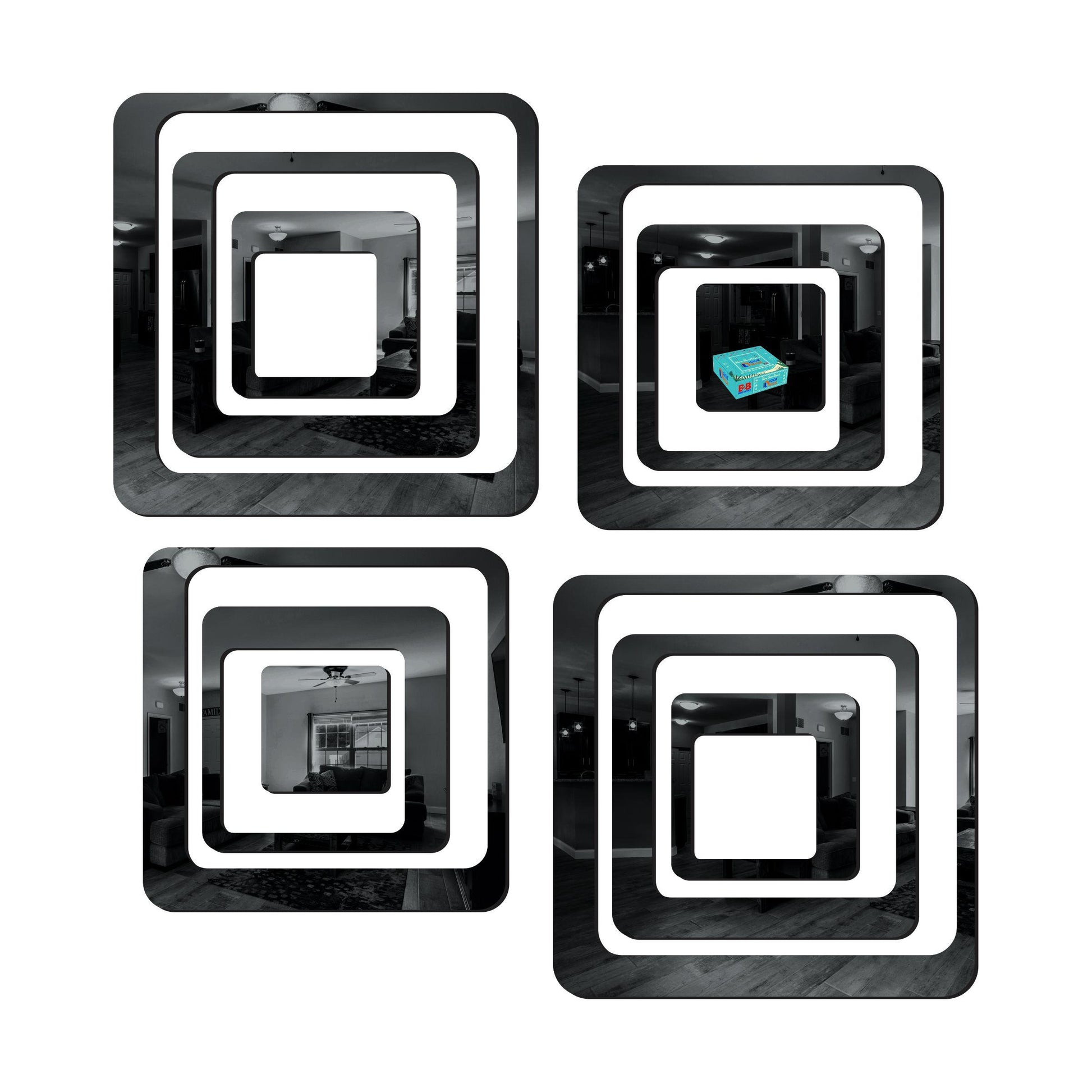 Product Name: 3D Acrylic Mirror Wall Sticker Decoration Package Contains: It has 12 Square Black (B07MLWSGD8) 3D Acrylic Mirror Wall Sticker Decoration for Kids Room/Living Room/Bedroom/Office/Home Wall Material: Acrylic Length: 11 Breadth: 5 Height: 11 Combo/Set Of: Pack of 1 Weight: 200